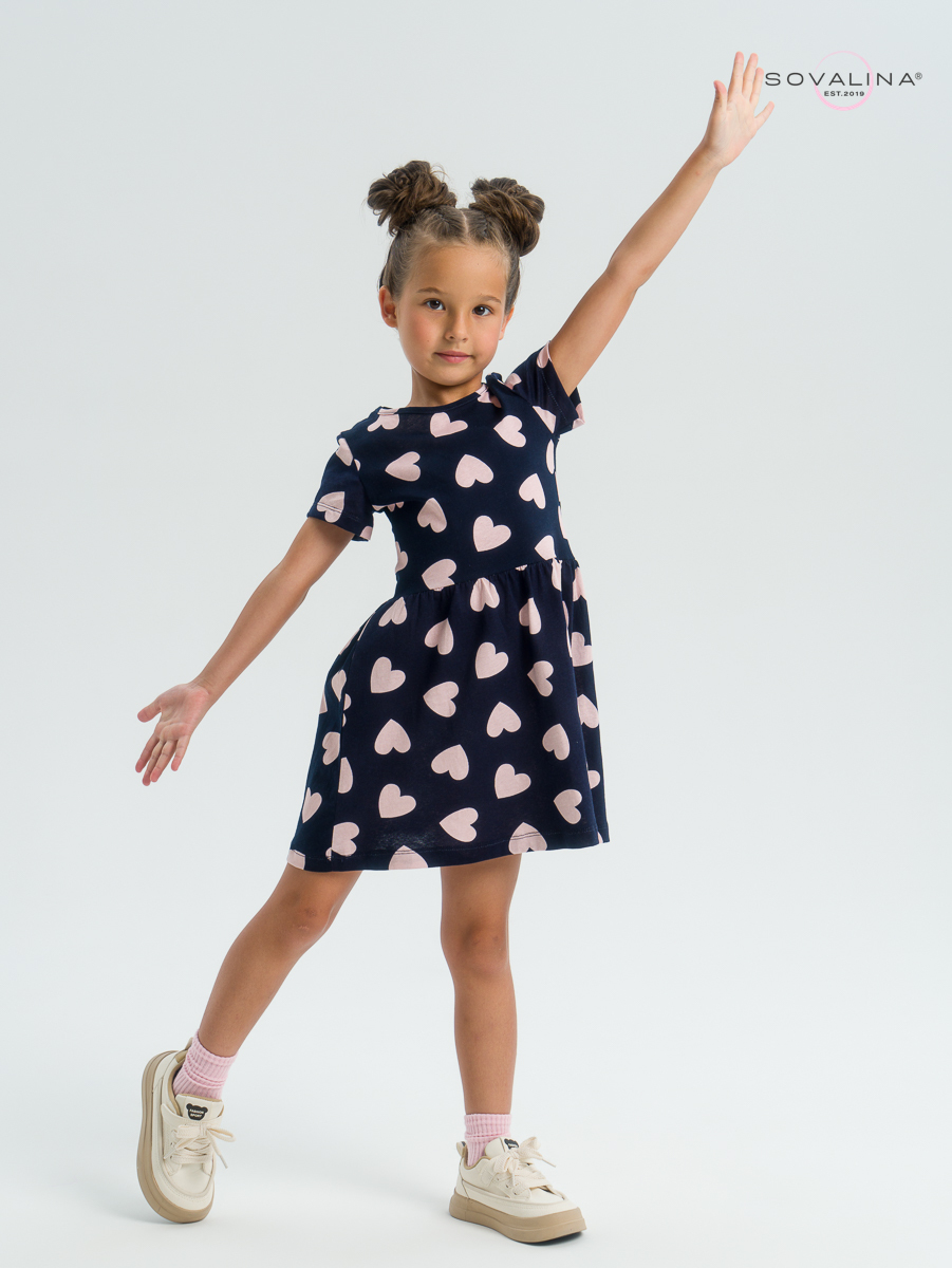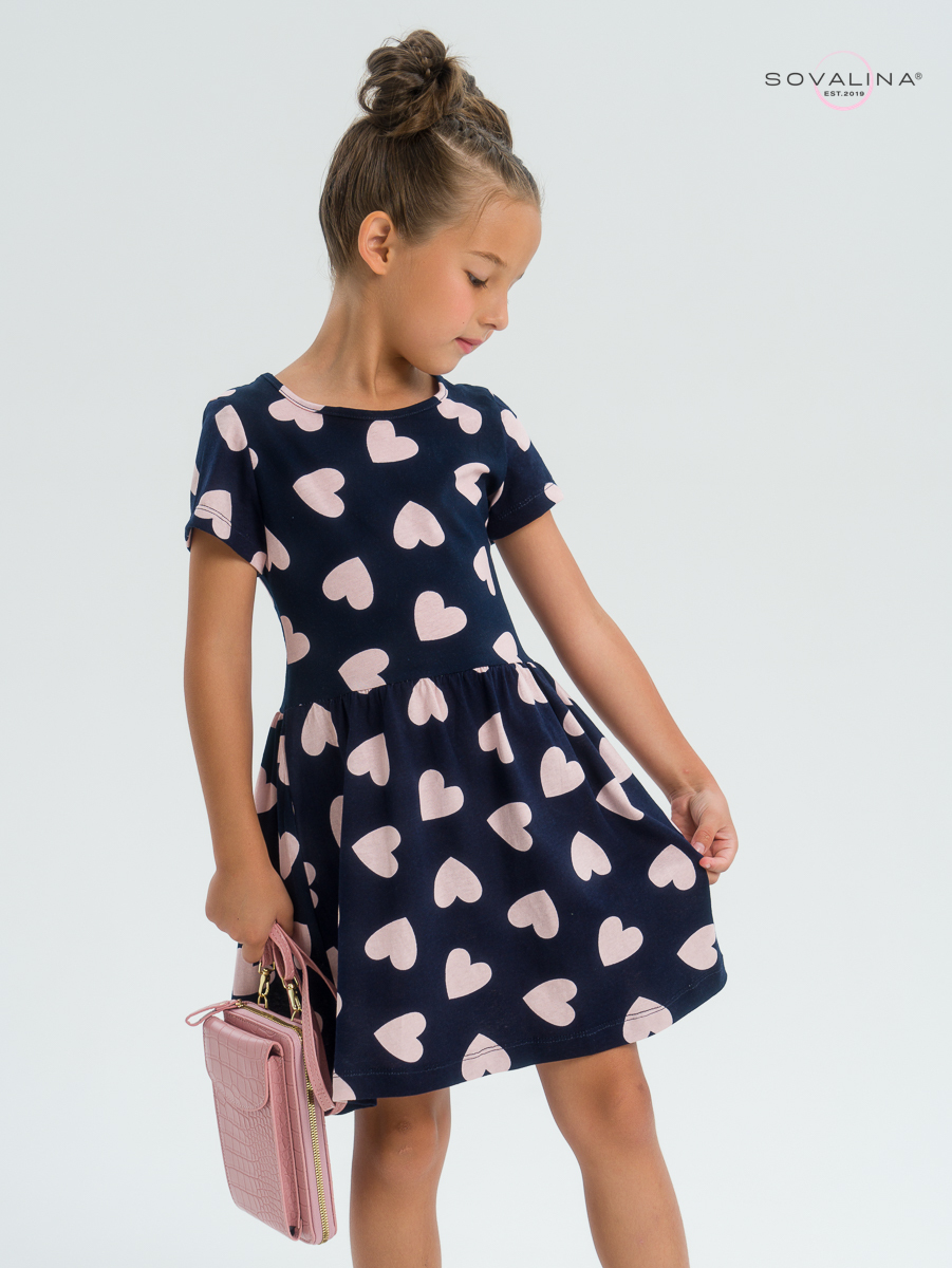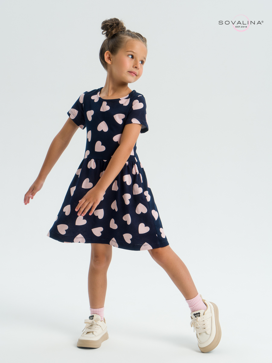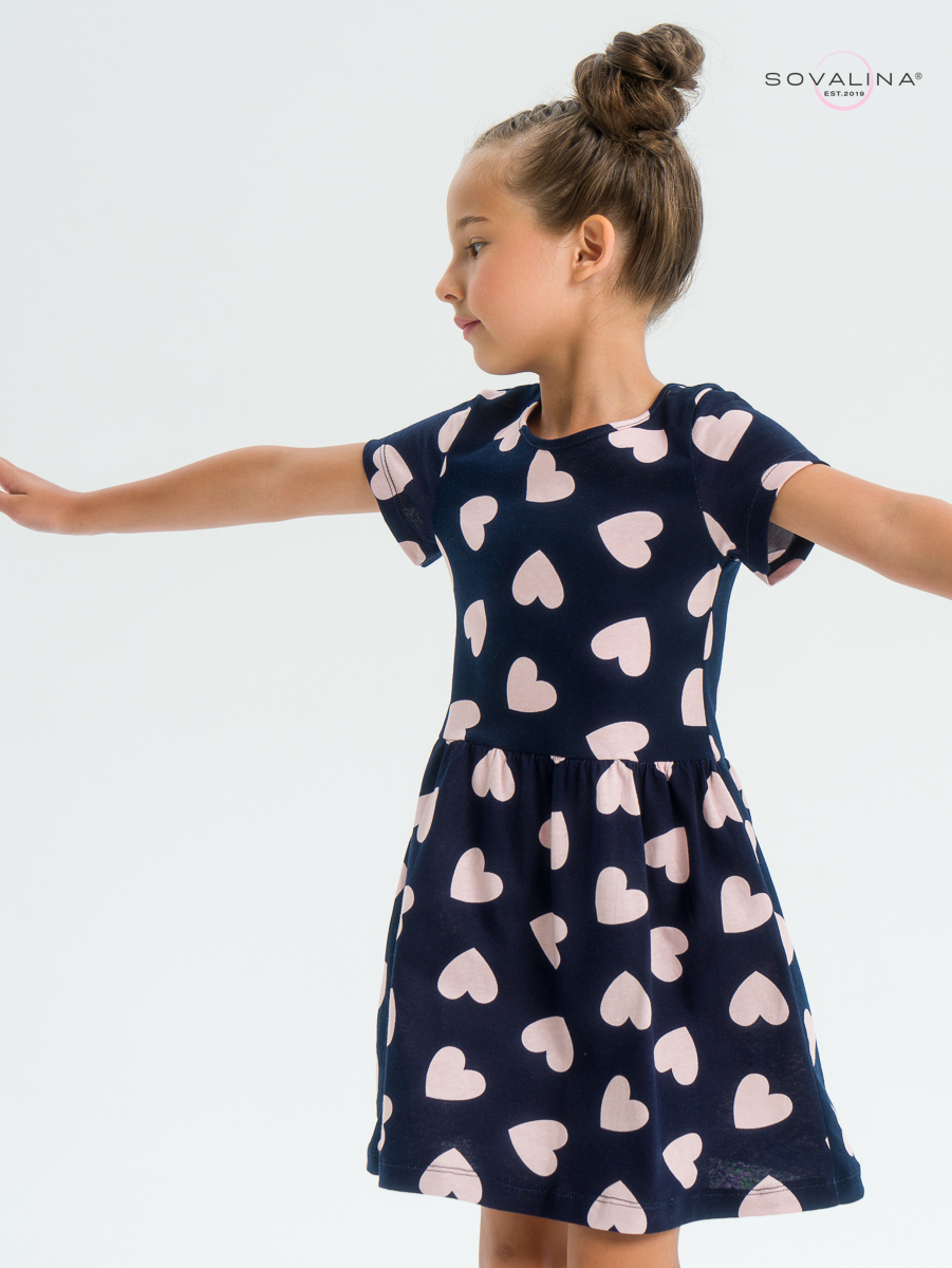 Трикотажное платье для девочки с коротким рукавом от бренда SOVAlina.