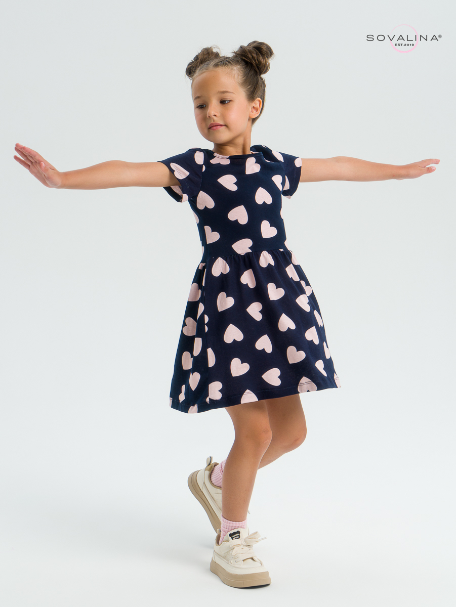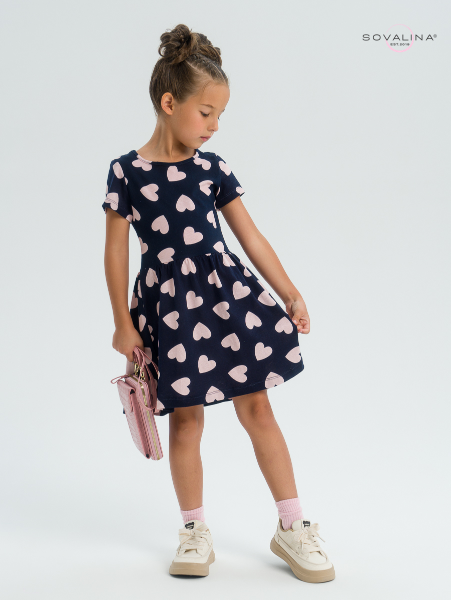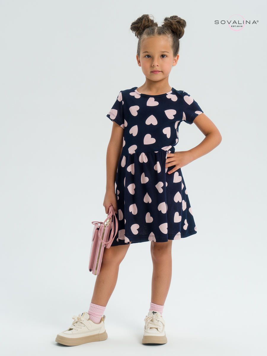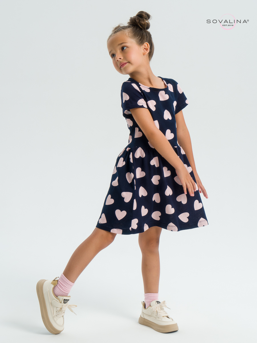 Трикотажное платье для девочки с коротким рукавом от бренда SOVAlina.